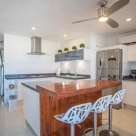 Staying at the 150 m² Penthouse Ocean & Lagoon Views, New Listing Cancun apartment, guests can visit the Delfines Beach, located 17 minutes' walk away. This 3-bedroom apartment is equipped with a terrace with seaside views.